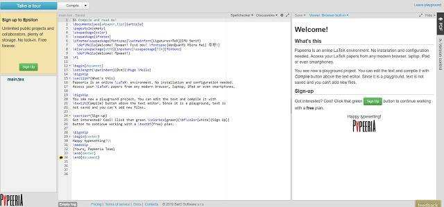 Papeeria 是一款在线 LaTeX 编辑器,拥有相当不错的高级工具和功能。你可以使用它基于网络的用户界面,在线实现所有 LaTeX 编辑功能。Papeeria 的主要功能之一是其庞大的模板库。