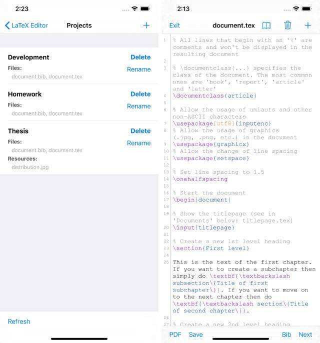 虽然您通常会在 PC 或 Mac 上使用 LaTeX 编辑器,但有时您在旅途中无法使用电脑。在这种情况下,如果您需要进行一些紧急编辑,可以使用 VerbTeX 这样的应用程序,它是一款非常出色的安卓和 iPhone LaTeX 编辑器。它具有语法高亮、支持本地和云模式、代码自动完成、热键等功能。您还可以使用自定义模板文件来启动您的 LaTeX 项目。
