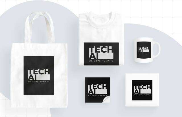 在几秒钟内,人工智能Logo生成器就会输出各种漂亮的设计,看起来相当酷。Logo的颜色各不相同,但你可以随时试验你输入的细节,以获得更多的AI生成的Logo。然而,最美丽的部分是,Brandmark向你展示你的标志在不同产品上的细节样机,以显示它的外观。