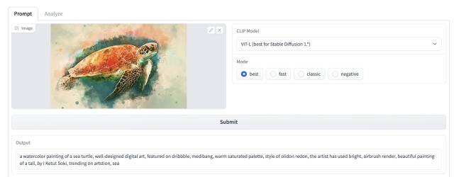 这个图像处理工具更注重图像的起源,而不是照片本身。如果你正在学习如何使用Midjourney来创造人工智能艺术,CLIP interrogator即将成为你最喜欢的工具;简单地说,这个工具分析任何给定的图像,并提出人们可能需要输入的提示来生成它。