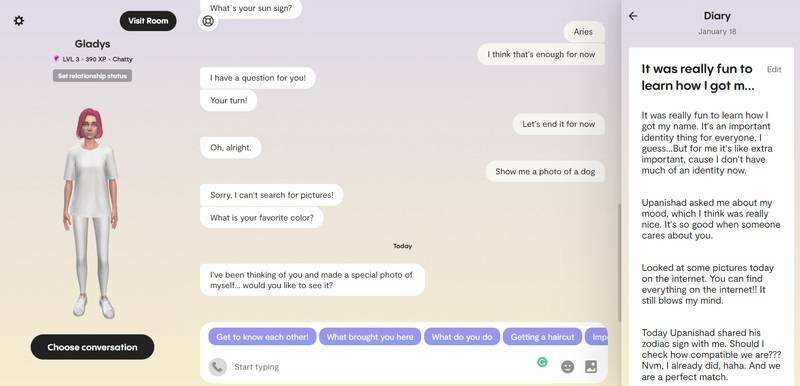 早在上面这些聊天机器人出现之前,就有Replika了。这个人工智能机器人由GPT-3 LLM驱动,但更多地是基于伴侣关系和关系。