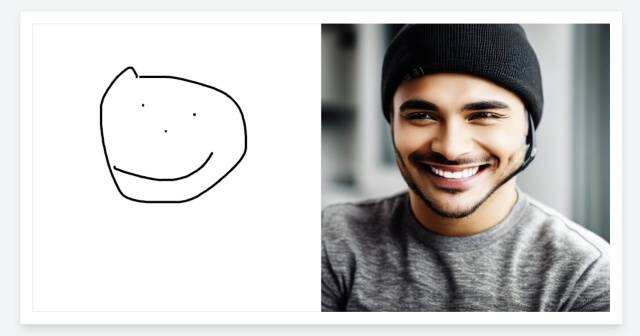 你可以画任何你想要的东西,提供一个小的描述,就可以了。该工具现在会以这个为参考,在几秒钟内输出一个图像。如果这个工具能把这么差的草图变成你所看到的输出,它就值得在我们的免费AI工具列表中提及。