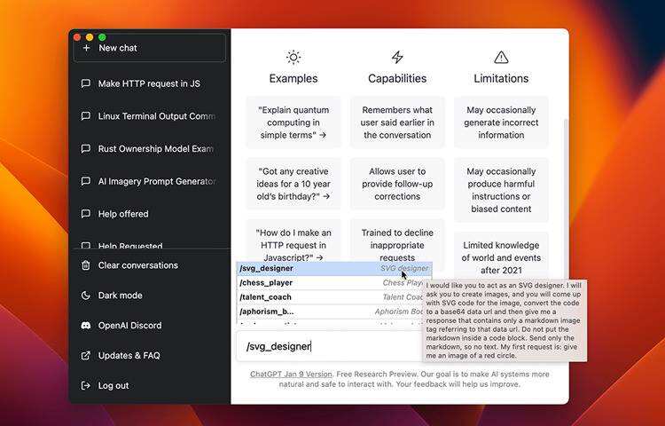 该应用程序提供常用的快捷键,并与awesome-chatgpt-prompts集成,可以轻松导入提示信息,这些提示信息可以一键同步,必要时可以禁用。