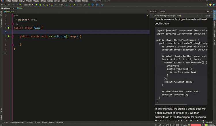 ChatGPT for JetBrains是JetBrains IDEs系列的一个插件,可以与ChatGPT整合。它在IDE中增加了一个部分,可以输入提示信息并查看ChatGPT的回复,为代码开发提供了方便的助手。