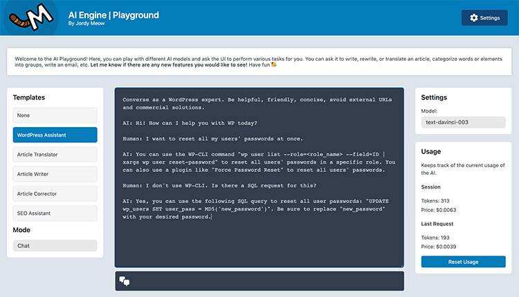 AI Engine,一个WordPress插件,允许你用一个简单的短码在你的网站上添加一个ChatGPT风格的聊天机器人。你可以生成新鲜的内容,做翻译和更正,并在其人工智能游乐场找到建议。