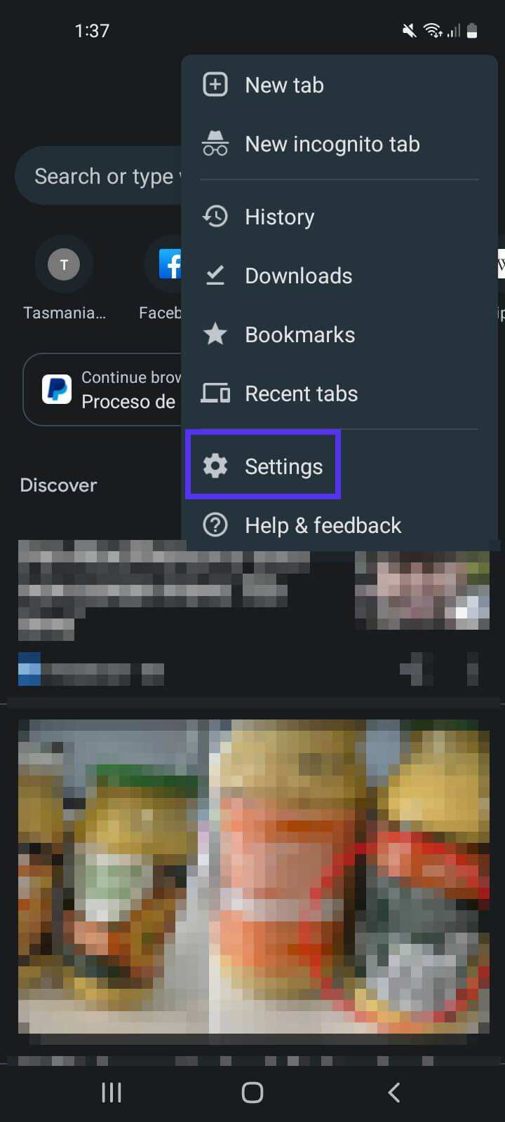 如果你在移动设备上使用谷歌浏览器,你可以通过点击更多>设置来删除追踪cookies: