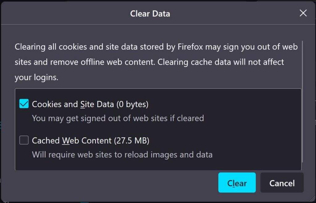 要删除追踪cookies,请点击清除数据。现在,确保勾选Cookies和网站数据旁边的方框,然后点击窗口底部的清除。