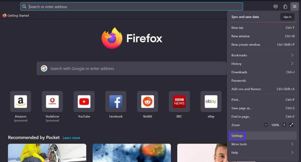 然而,如果你担心跟踪cookie已经进入你的浏览器,你可以轻松地删除它。只需点击浏览器窗口右上角的三条线,选择设置: