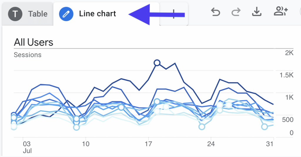 如果您想添加多个可视化(例如表格和折线图),您可以复制第一个表单并为复制的报表切换可视化。