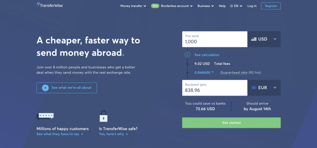 TransferWise是一种支付服务,以提供跨国家/地区货币的实际汇率而自豪。