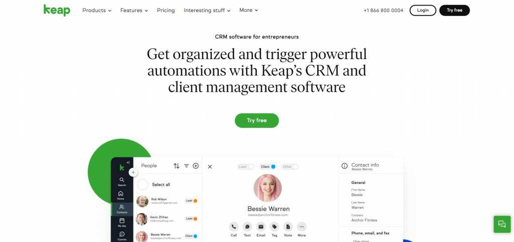 Keap提供了一个功能有限的免费客户关系管理计划:100个联系人,25个文本/天,并且只有一个用户。