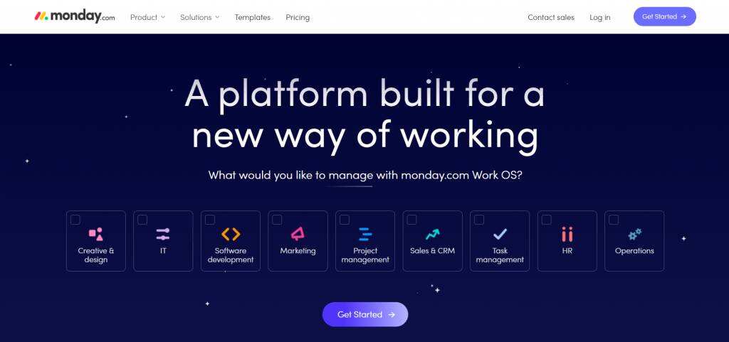 Monday.com是一个工作流和团队管理解决方案。它为特定部门的需求提供各种管理解决方案,包括创意和设计、人力资源、销售和客户关系管理。