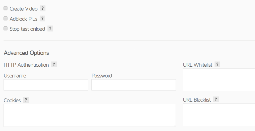 其他选项包括创建视频的能力。这可以帮助您调试问题,因为您可以查看页面的呈现方式。AdBlock Plus是一个不错的功能。如果您正在运行Google Adsense等第三方广告网络,则可以启用此选项以查看广告对加载时间的全部影响。