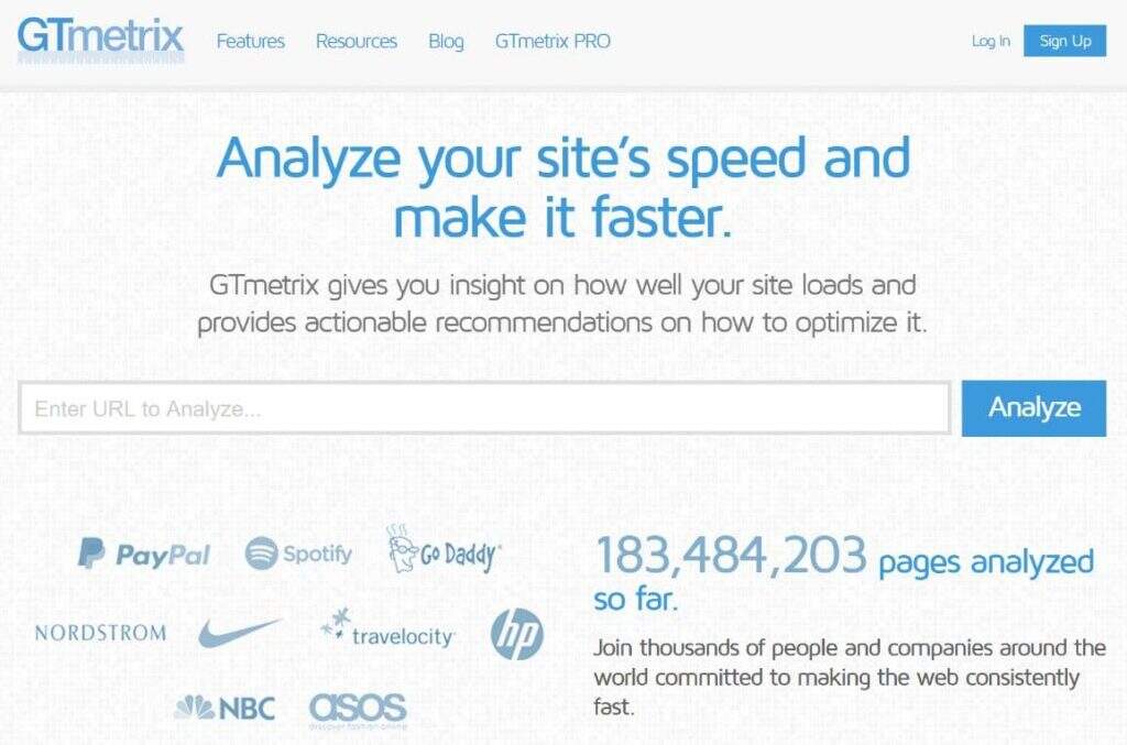 GTmetrix由位于加拿大的公司GT.net开发,作为其托管客户轻松确定其网站性能的工具。除了Pingdom,它可能是当今网络上最知名和最常用的速度测试工具之一!与其他开发工具相比,GTmetrix非常易于使用,初学者可以很快上手。它结合使用Google PageSpeed Insights和YSlow来生成分数和推荐。