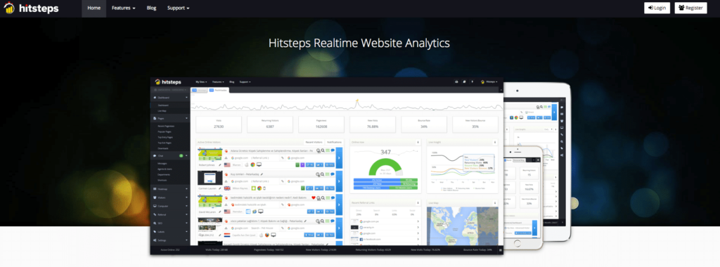 Hitsteps提供实时分析功能,包括热图、页面分析、公司简介、简介可视化、报告等。