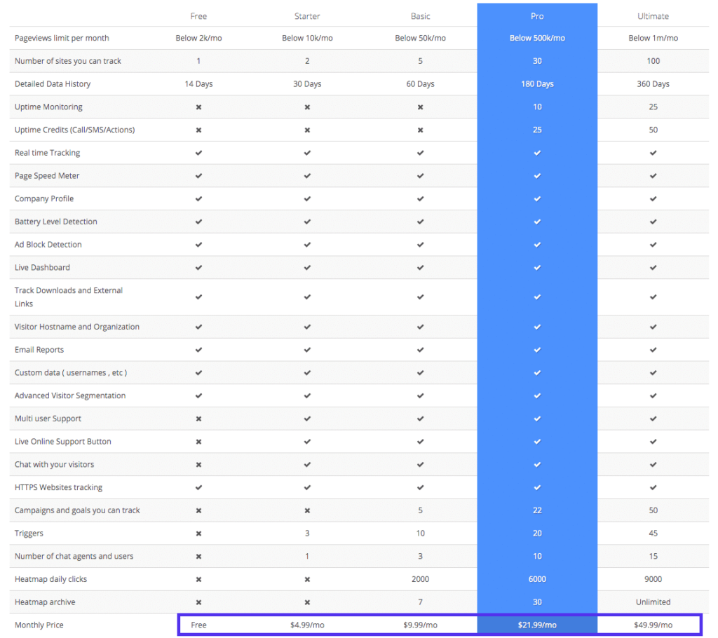 他们是分析行业值得信赖的名字,他们的软件在190多个国家/地区的140万个网站上使用。该软件具有多种功能,从分析和转换优化到访问者资料。