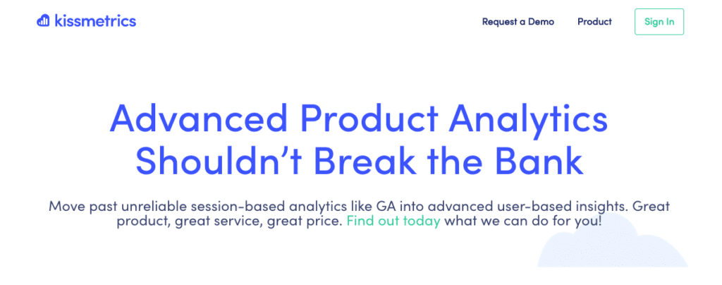 它被900多家公司使用,其中包括Unbounce等一些知名品牌。他们的价值主张实际上是特定于他们作为Google Analytics替代品的位置: