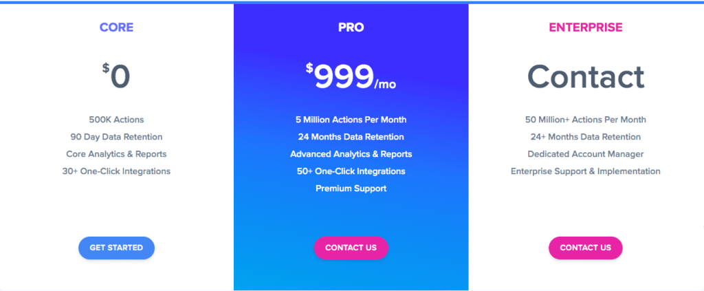 共有三个定价层:免费核心计划、每月999美元的专业计划和自定义企业计划。