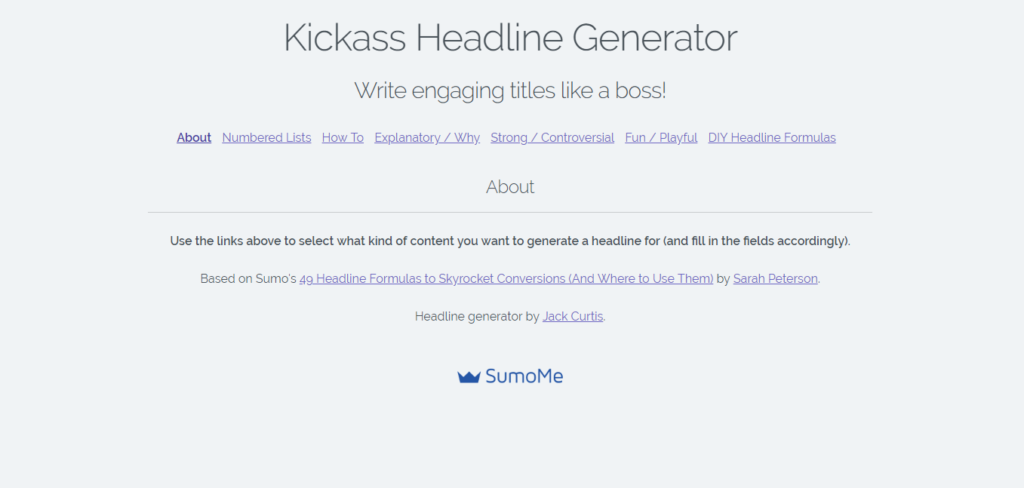 Sumo Kickass Headline Generator要求您首先选择需要为其创建标题的内容类型。