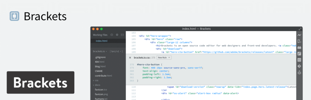 Brackets文本编辑器来自Adobe公司的乡亲,在试图为开发人员提供创建网站更现代的,开放源码的解决方案。这是一个免费的文本编辑器,带有一些吸引人的可视化工具,用于预览您的工作并允许前端开发人员检查更改。编写代码是Brackets的主要焦点,它是在内联编辑器、实时预览和组织良好的文件的帮助下完成的。