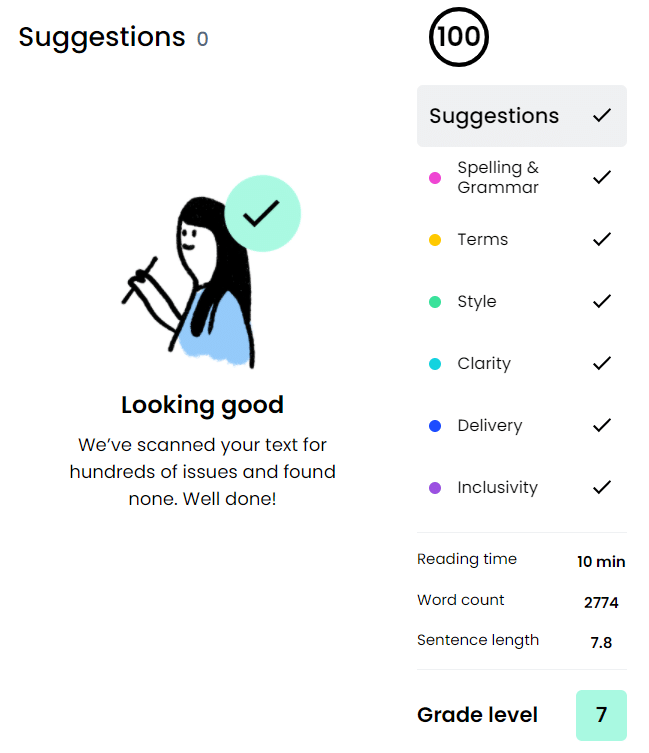 尽管它的名字,Grammarly不仅仅是一个语法检查器。它会检查您的写作: