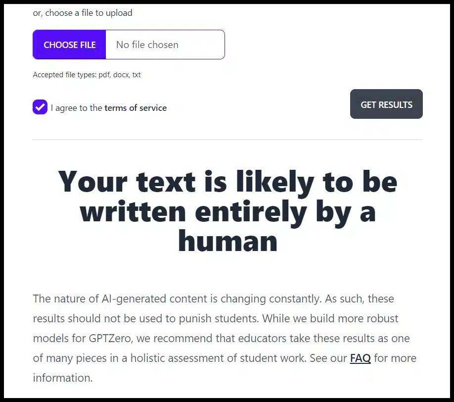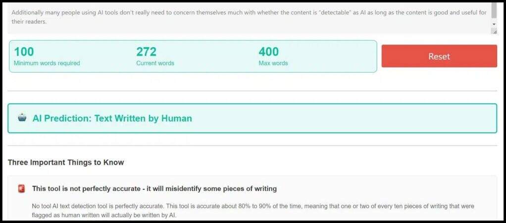 该工具的免费版本将我们的三个写作样本都识别为可能完全是人类。