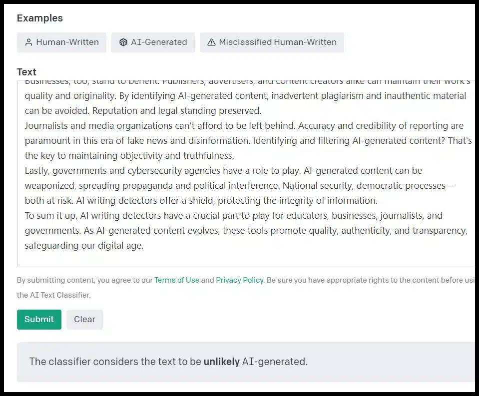 这个工具基本上认为所有提交的内容都比较可能是人类产生的。