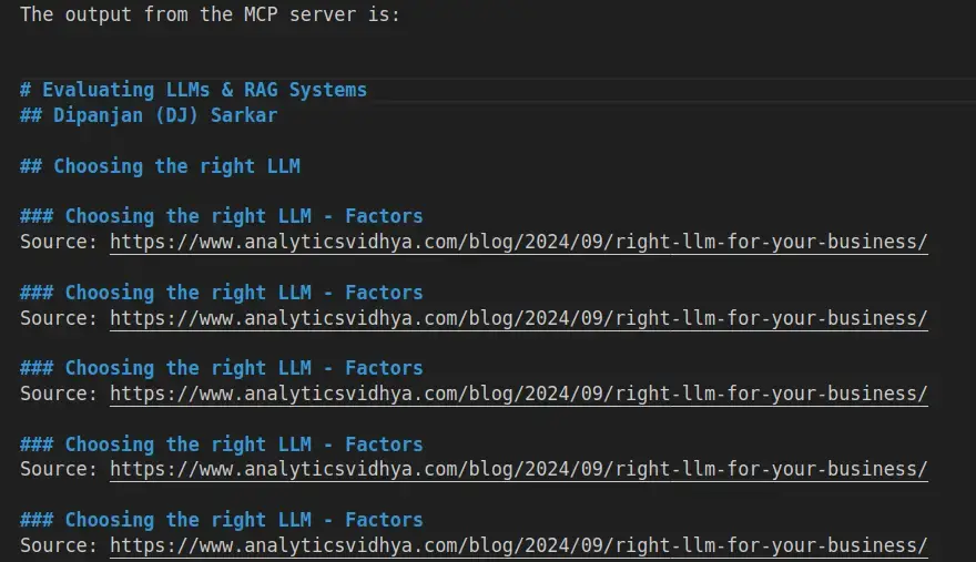 在输出中,我们可以看到它成功地检索到了标题、内容以及 Markdown 格式的普通文本。