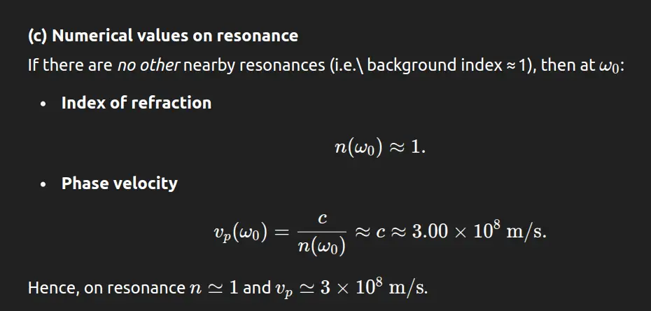 | 共振频率和速度 | 精确的数值,包括单位换算和含义 | 近似但清晰;假定背景指数≈1 | 定性解释;定量略少 |