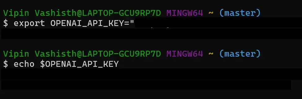 bash nano ~/.bash_profile # Add "export OPENAI_API_KEY=..." source ~/.bash_profile