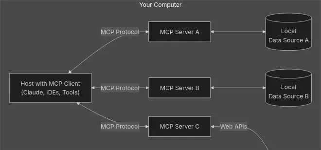 - MCP 服务器:暴露特定数据源或工具的轻量级适配器。