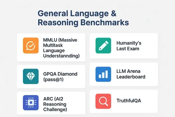 - 标准化考试成绩:基于 SAT 或 GRE 等考试的基准模拟真实世界的教育评估,以评估一般认知能力。