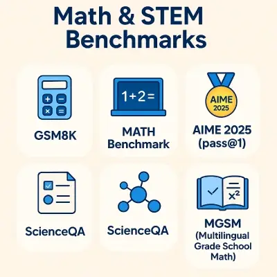 本类别侧重于计算能力和结构化推理,包括纯数学以及与科学相关的问题解决。这些基准测试模型逐步推理和解释定量数据的能力。