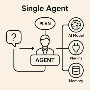 单一代理基本上是一个独立处理用户查询的实体。它无需多个代理或协调器(我们将在多代理部分介绍)就能处理所有事务。单一代理负责处理请求、获取相关信息和生成响应,所有这些工作都在一个地方完成。