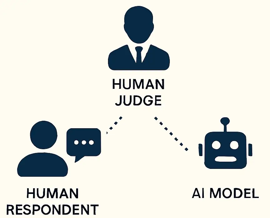 在他们的研究中,琼斯和卑尔根重现了最初的图灵测试。阿兰-图灵的原始测试包括一名人类法官通过文本与人类和机器进行盲目交互。如果法官无法可靠地区分两者,则认为机器表现出了智能行为。