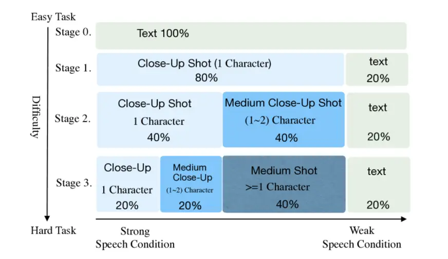 这种方法有助于模型在处理更复杂的肢体动作之前,首先掌握唇部同步(语音预测性最强)。