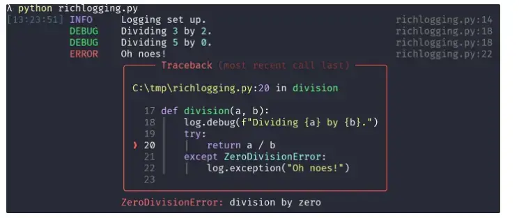 Certainly! Here is an expanded explanation of how we can solve any potential issues with this corrected version:1. **Syntax Correction**: The original error was due to improper indentation, which caused a `IndentationError. In Python, proper block structure and consistent indentations are crucial for the interpreter. 2. **Handling ZeroDivisionError Properly**:- A division by zero is an exceptional case that needs special handling.- Using try-except blocks allows us gracefully handle this exception without crashing our program unexpectedly (i.e., `ZeroDivisionError").3. **Logging and Debugging Information**:- The use of the logging module (log.debug`) helps in tracking what values are being processed, which is useful for debugging.Here's a complete example with proper indentation:```pythonimport logging# Configure logger to display debug level messages.logging.basicConfig(level-logging.DEBUG)log = logging.getLogger(____name___)def division(a, b):log.debug(f"Dividing {a} by {b}.")try:return a / b # Attempt the division operation hereexcept ZeroDivisionError as e: # Catch and handle zero-division error specifically. log.exception("Oh noes!") # Log an exception message with traceback# Example usage of function to demonstrate logging outputif __name_ "_main_":print(division(10, 2))try:division (5, 0) except Exception as e:pass# Should work fine# This should raise a ZeroDivisionError and log it.# Catch any unexpected exceptions (though unlikely here)