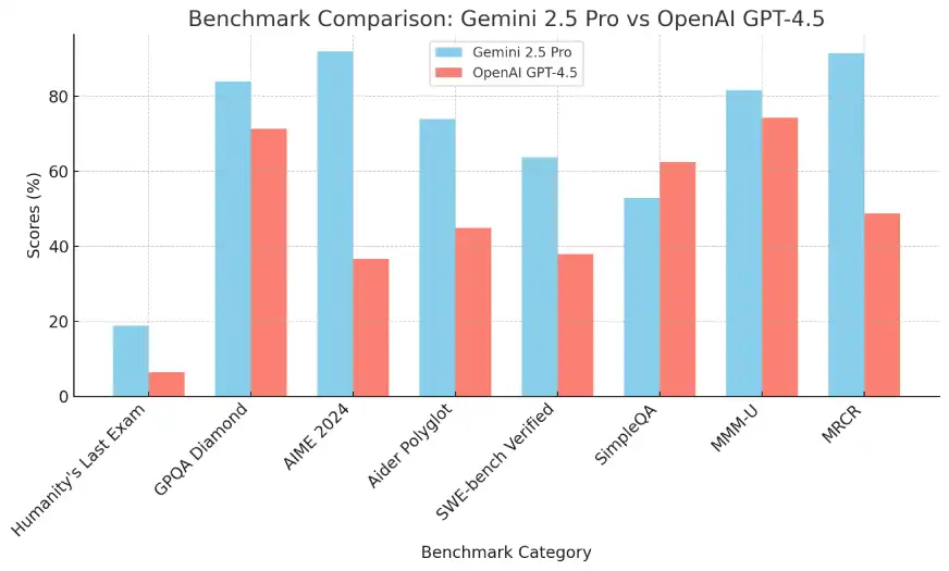 Gemini 2.5 Pro与GPT-4.5:基准测试比较