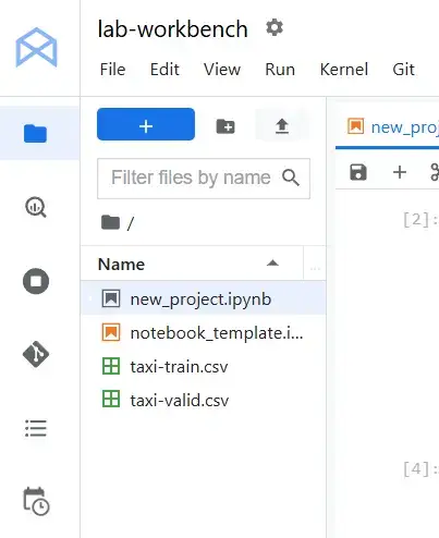 首先将 taxi-train.csv 和 taxi-valid.csv 数据集上传至笔记本。