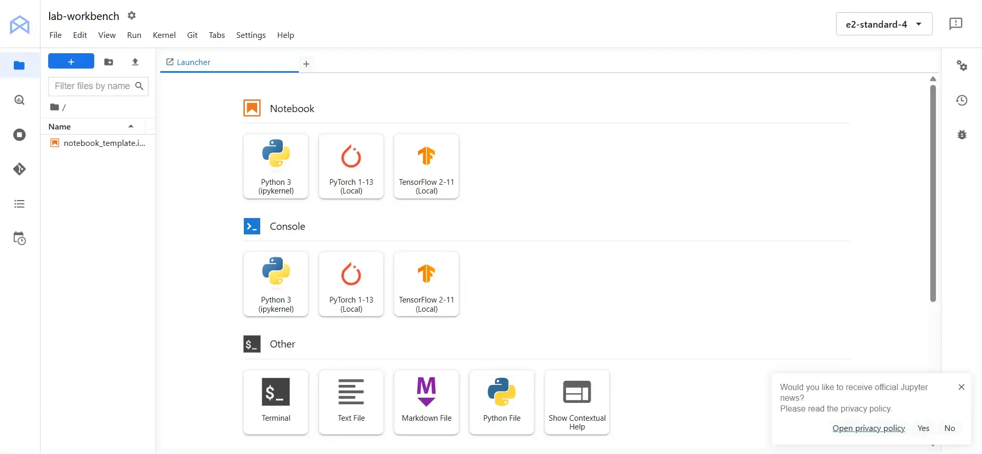 - 学习启动 Vertex AI Workbench 实例、设置 Jupyter Notebook 并开始工作。