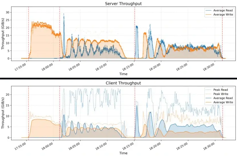 在 GraySort 等基准测试中,Smallpond 的性能大放异彩,在一个拥有 50 个节点、25 个 3FS 存储节点的计算集群上,它能在 30 分 14 秒内对 8,192 个分区的 110.5 TiB 数据进行排序(吞吐量为 3.66 TiB/分钟)。