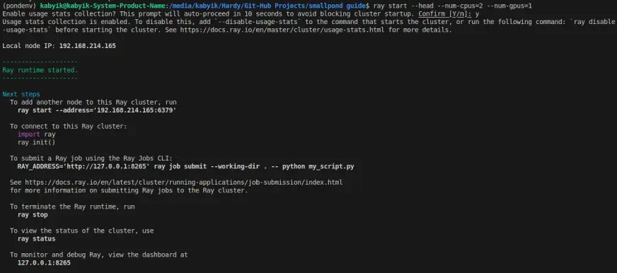 #intialize ray accordingly ray start --head --num-cpus= --num-gpus=
