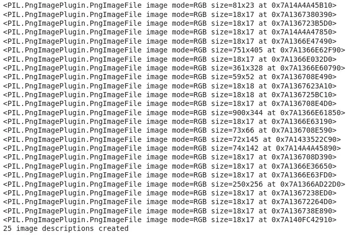 print(f"{len(pictures)} image descriptions created")Copy Code