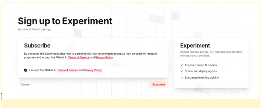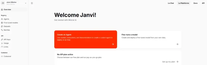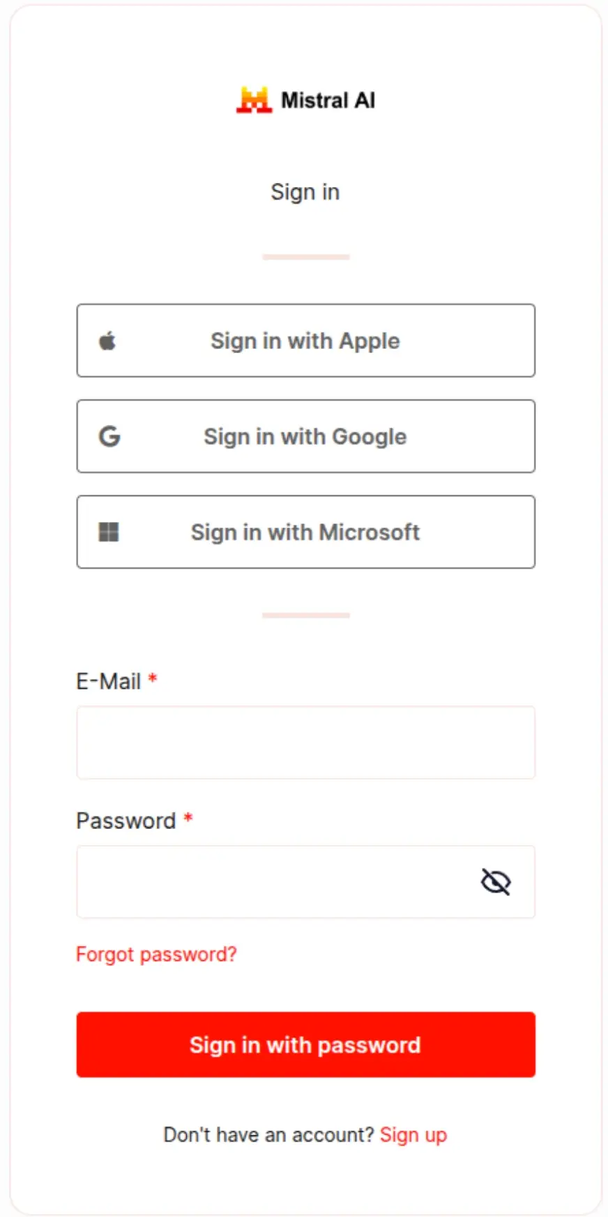 - 访问网站:访问 Mistral AI 登录或使用所有必要的详细信息登录。