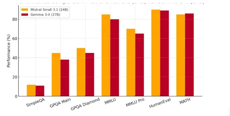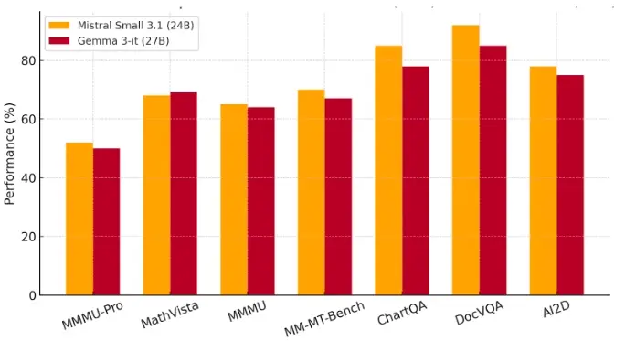 Gemma 3 和 Mistral Small 3.1 都是经过各种基准评估的著名人工智能模型。