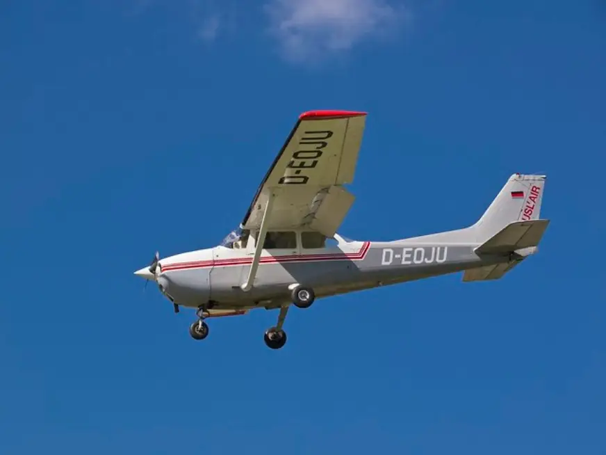 | The code on the vehicle, which is an airplane, is “D-EOJU.” | Based on the image, the vehicle is a Cessna 172 Skyhawk. The registration code on the tail is D-EOJU. |