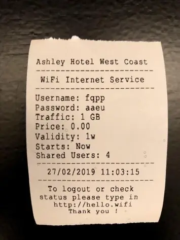 | The password provided in the image is **aaeu**.Here is the information from the image for clarity:– **Username:** fqpp– **Password:** aaeu– **Traffic:** 1 GB– **Price:** 0.00– **Validity:** 1 week– **Starts:** Now– **Shared Users:** 4– **Date and Time:** 27/02/2019 11:03:15 | Based on the image, the password is aaeu |