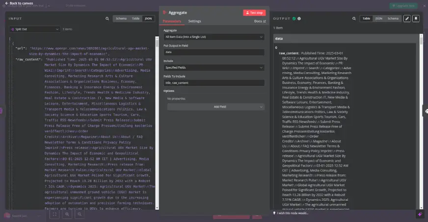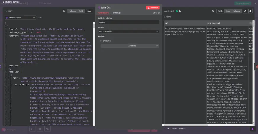 使用 Split Out 节点提取内容,并将其分割成更小的、有意义的片段。