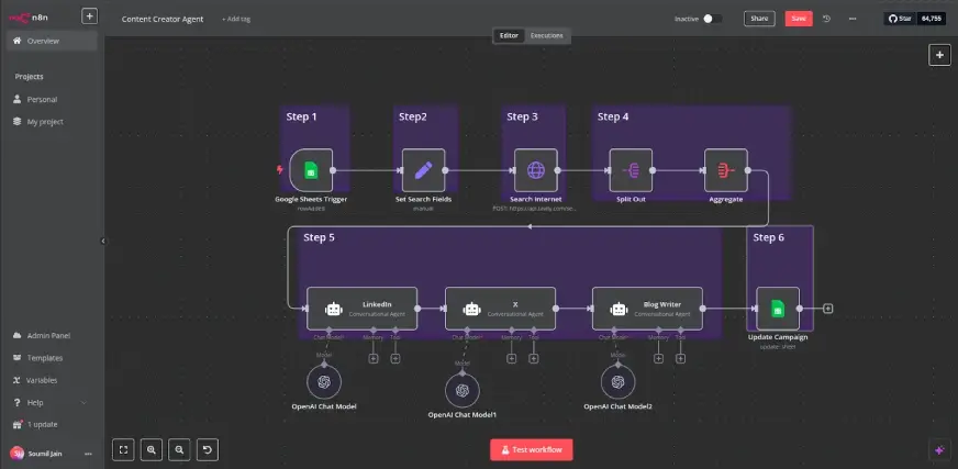 为了应对这一挑战,我使用n8n创建了一个工作流程,在人工智能工具的帮助下自动创建内容。具体操作如下: