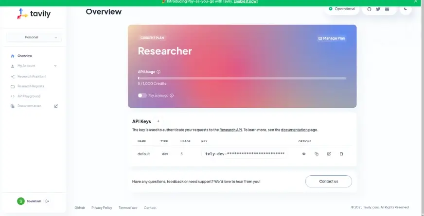 - 找到您的API密钥,进入“Dashboard”或“Overview”页面。